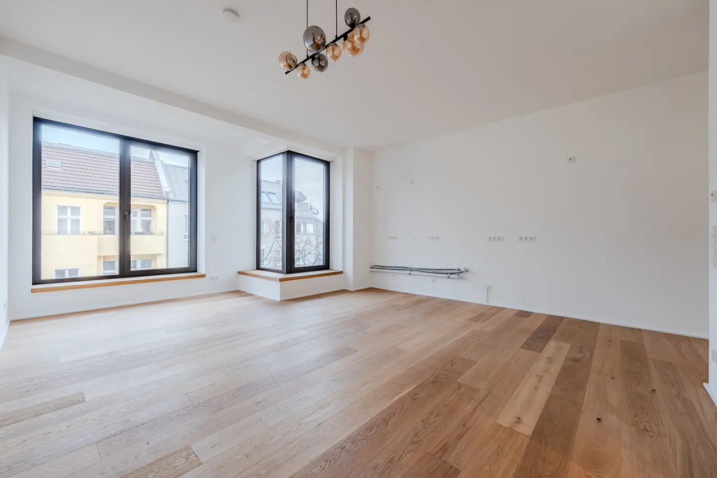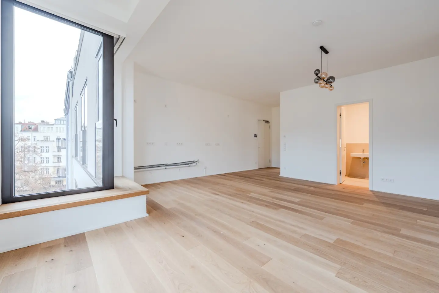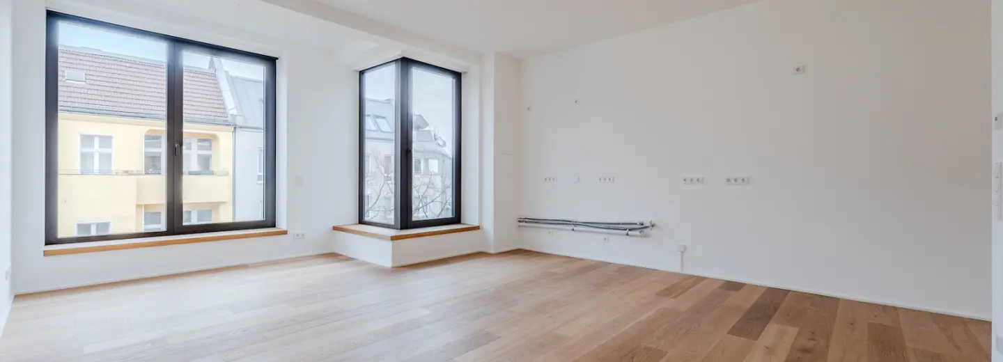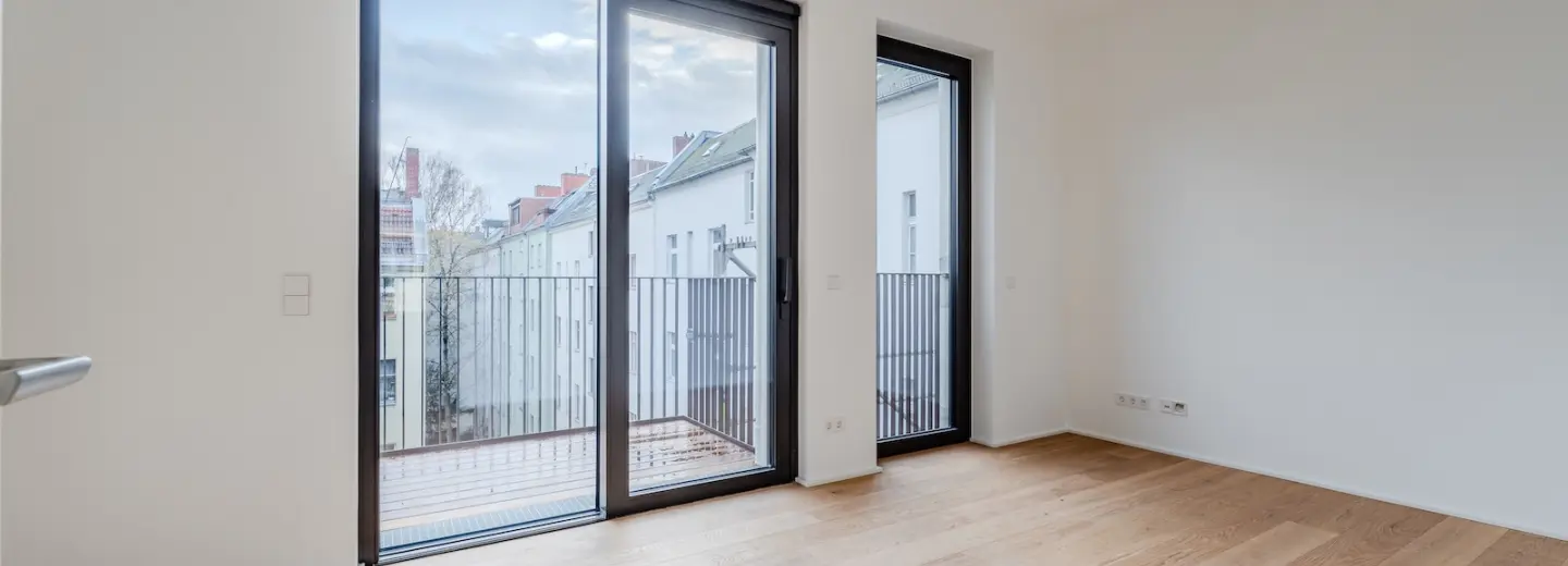 Zentraler Mittelpunkt ist die rund 30 m² große Wohnküche mit Ausrichtung zur Weserstraße und viel Platz für Kochen, Essen und gemeinsames Beisammensein. Zwei weitere Zimmer zur Straßenseite bieten flexible Nutzungsmöglichkeiten, während ein ruhiges Zimmer zum Innenhof direkten Zugang zum Balkon bietet. Zwei modern ausgestattete Badezimmer – ein Hauptbad sowie ein zusätzliches Duschbad – sorgen für hohen Komfort. Ein separater Abstellraum ergänzt das Raumangebot. Die Wohnung wird im Erstbezug angeboten und ist Teil eines architektonisch anspruchsvollen Neubaus, konzipiert von HeimBalp Berlin.