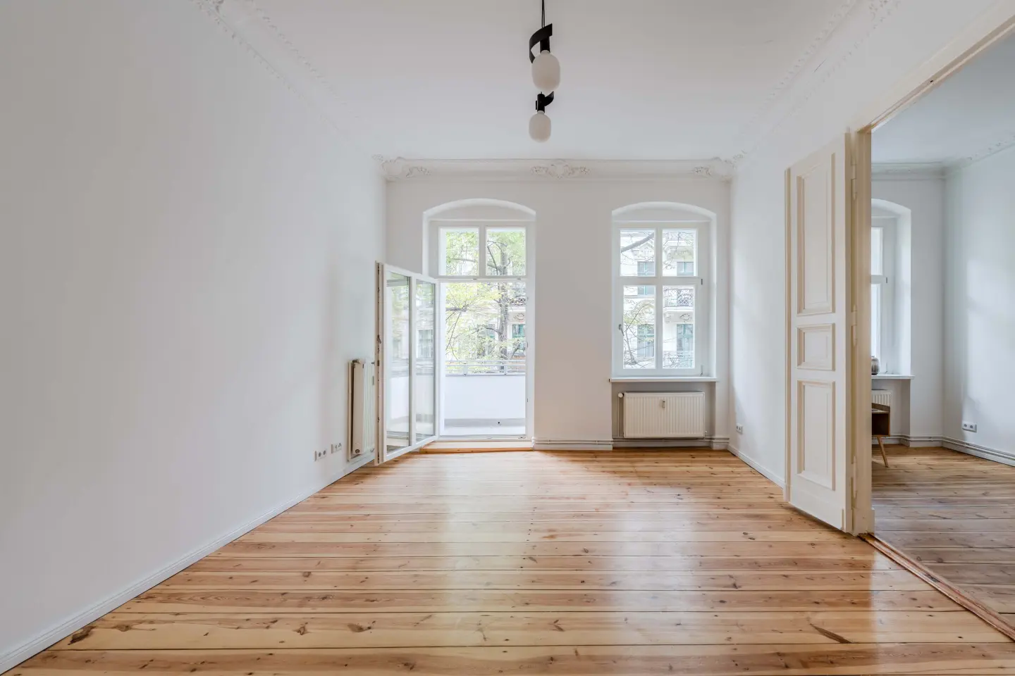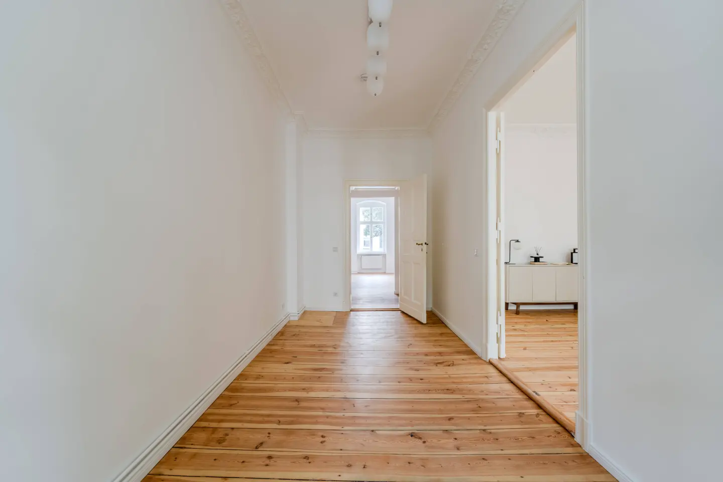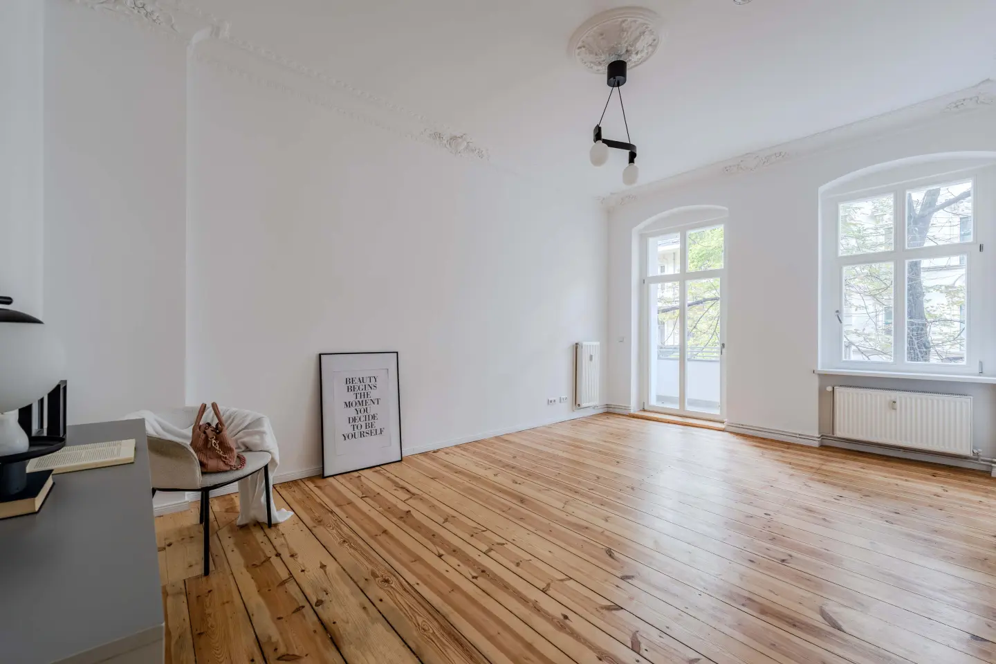 Classic details such as high ceilings, original double doors, and natural wooden floors highlight the timeless Altbau character, while the renovation has brought in modern functionality and style. The result is a home that is both elegant and practical – a true gem in one of Berlin’s most vibrant quarters.