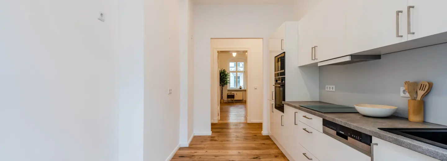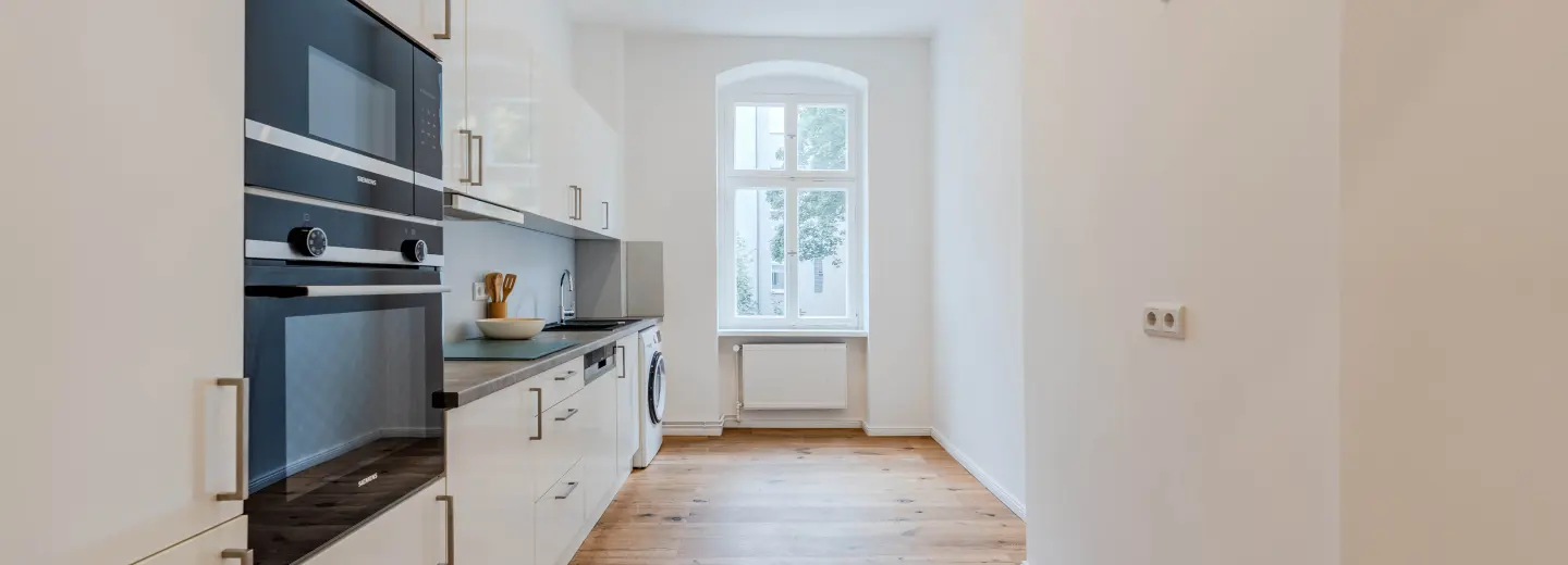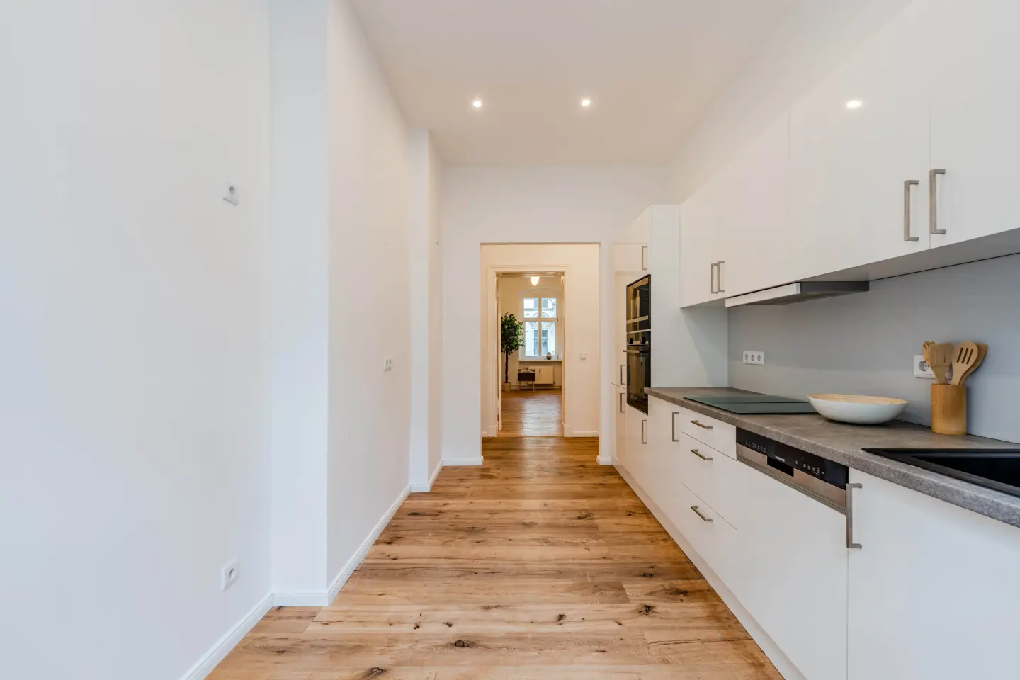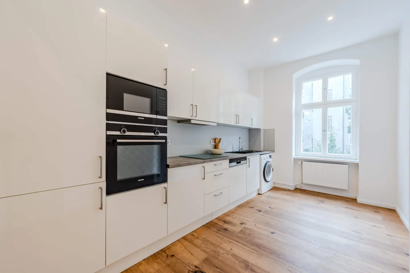 Classic details such as high ceilings, original double doors, and natural wooden floors highlight the timeless Altbau character, while the renovation has brought in modern functionality and style. The result is a home that is both elegant and practical – a true gem in one of Berlin’s most vibrant quarters.